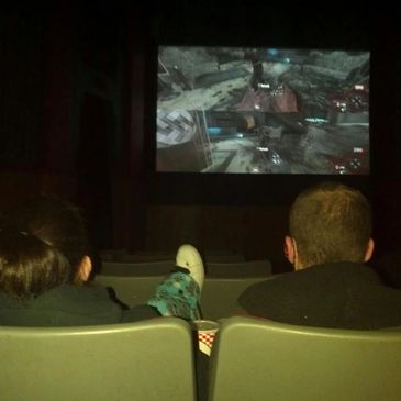 Book your time to come play on the big screen. Bring your own gaming system.